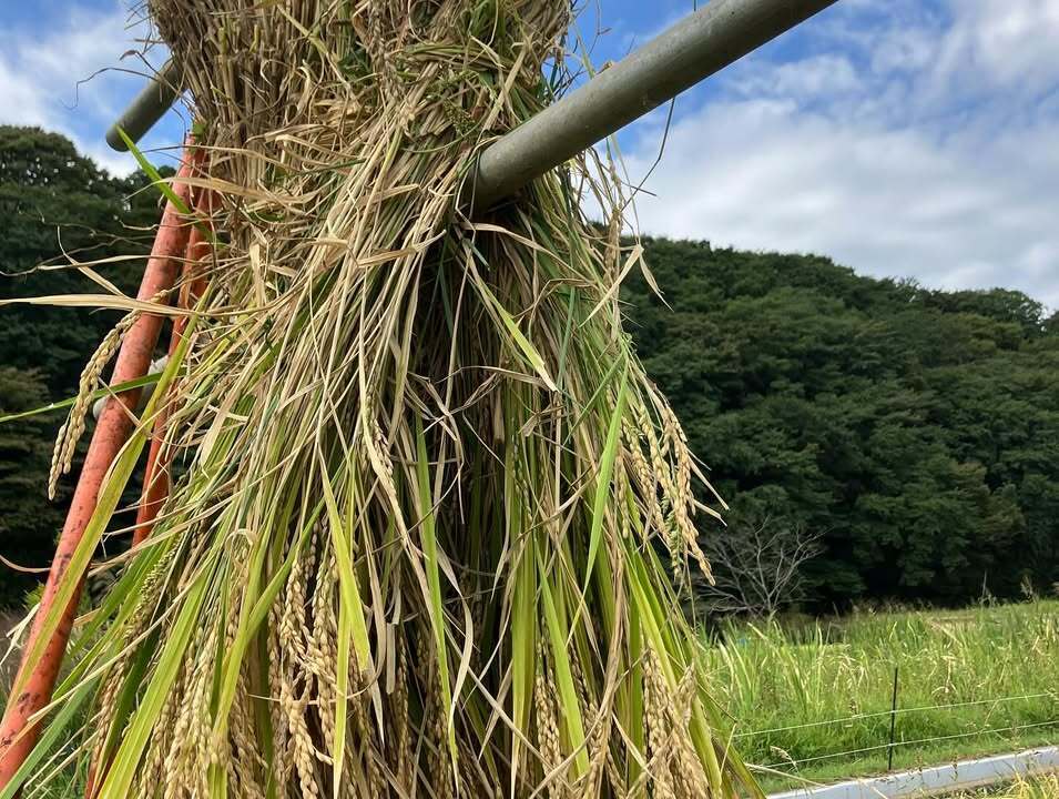 今日から少しづつ手で稲刈りを始め、掛け干しをしました♪
