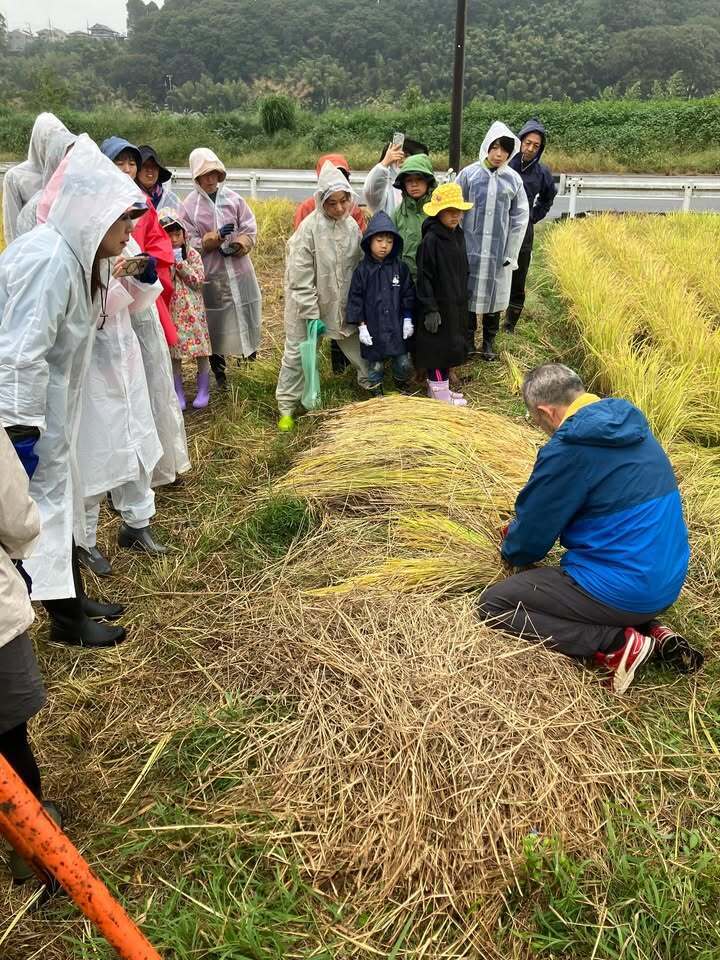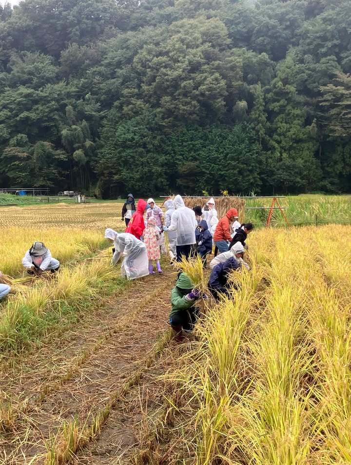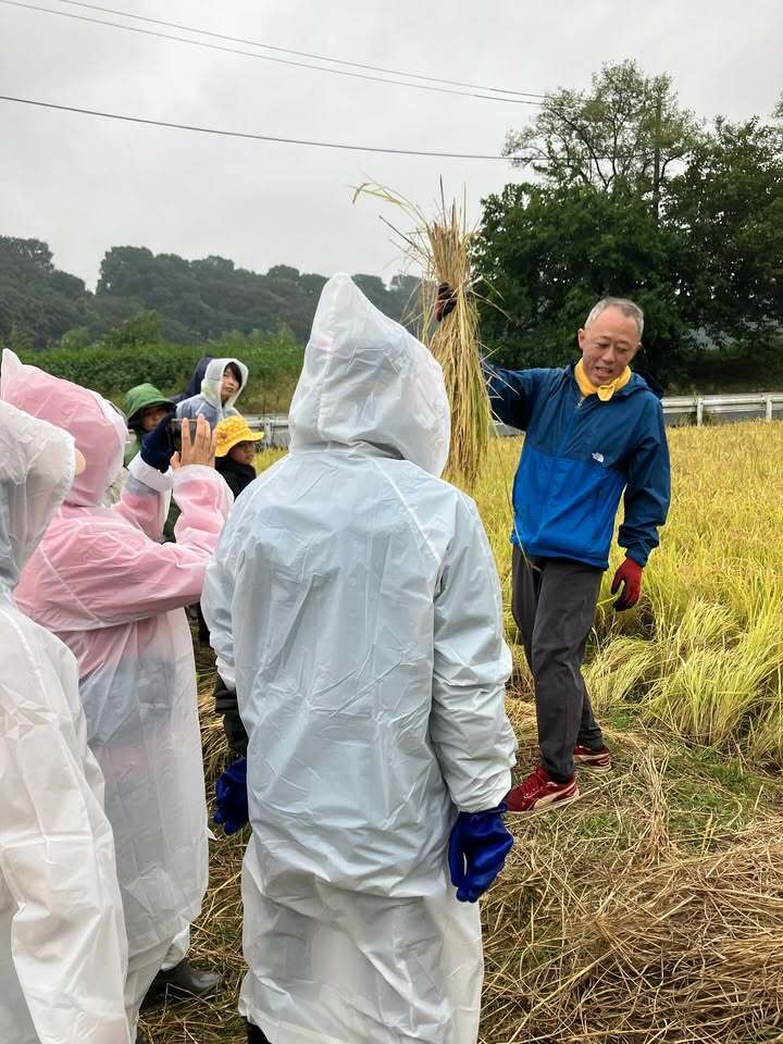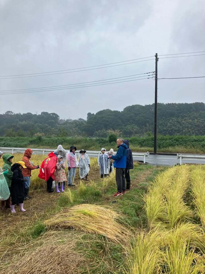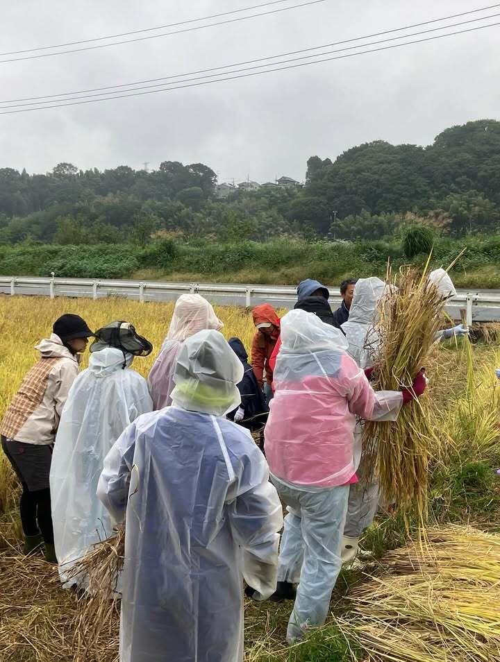 恵の雨の中、稲刈り体験会1日目が終了しました🌾