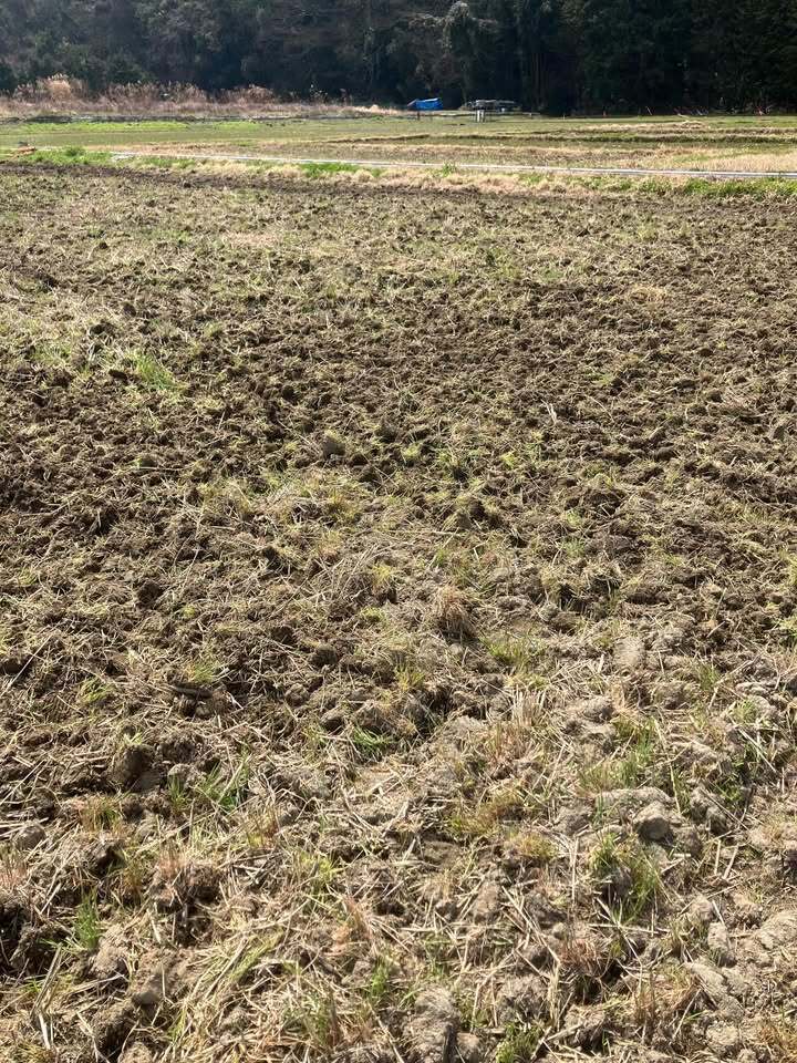 田植えに向けて幸運を3回して米ぬかや藁を撒いて肥料にして土づくりをしています。